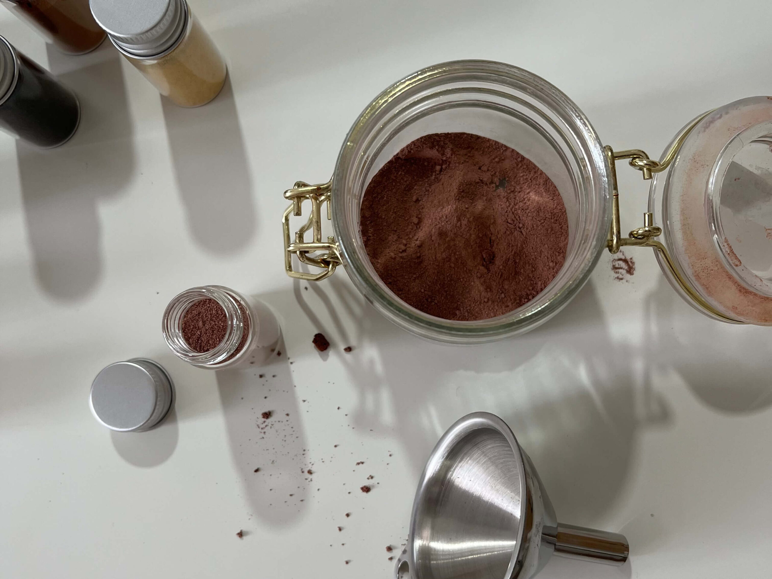 - Drie kleuren aardepigmenten naar keuze (in flesjes van 10 ml)