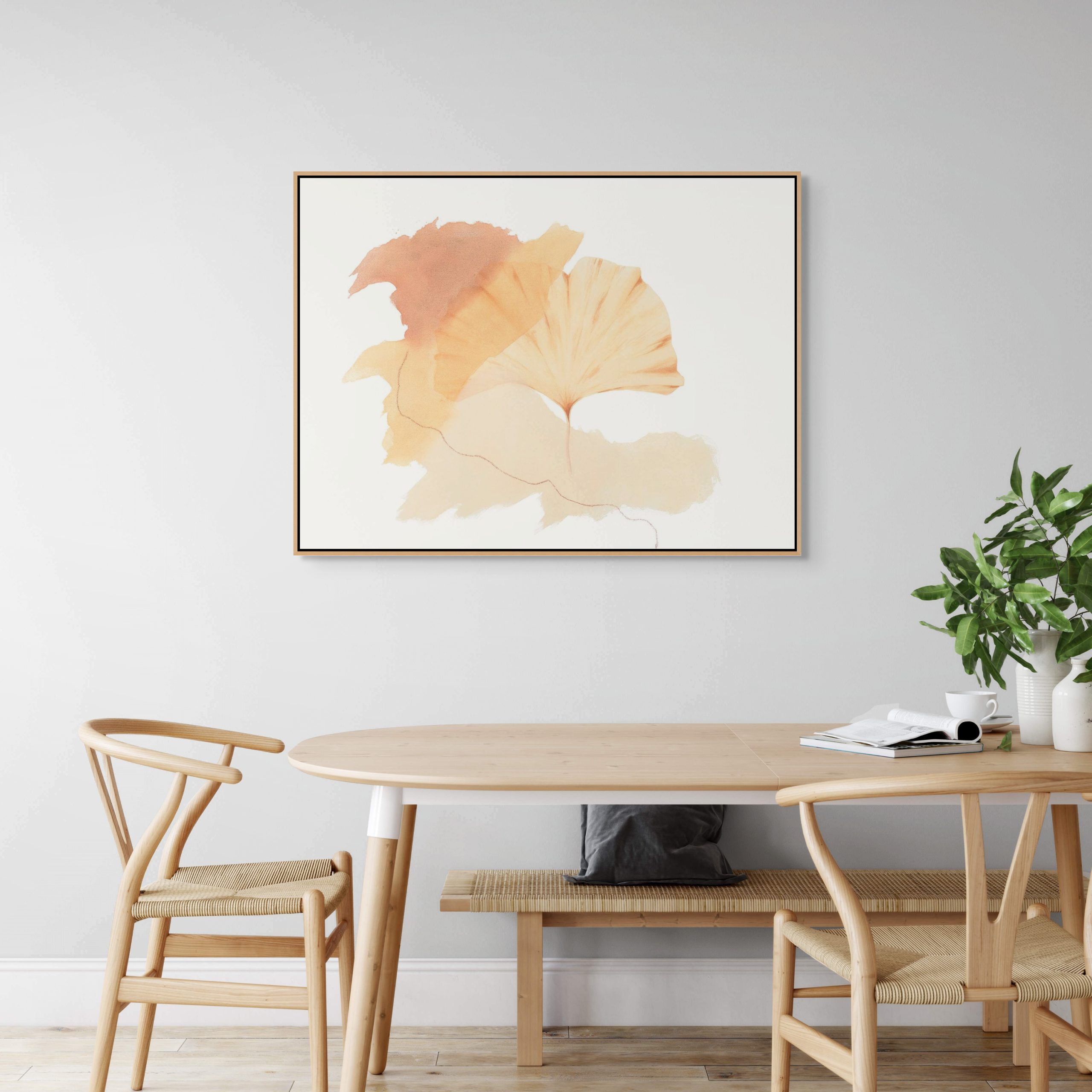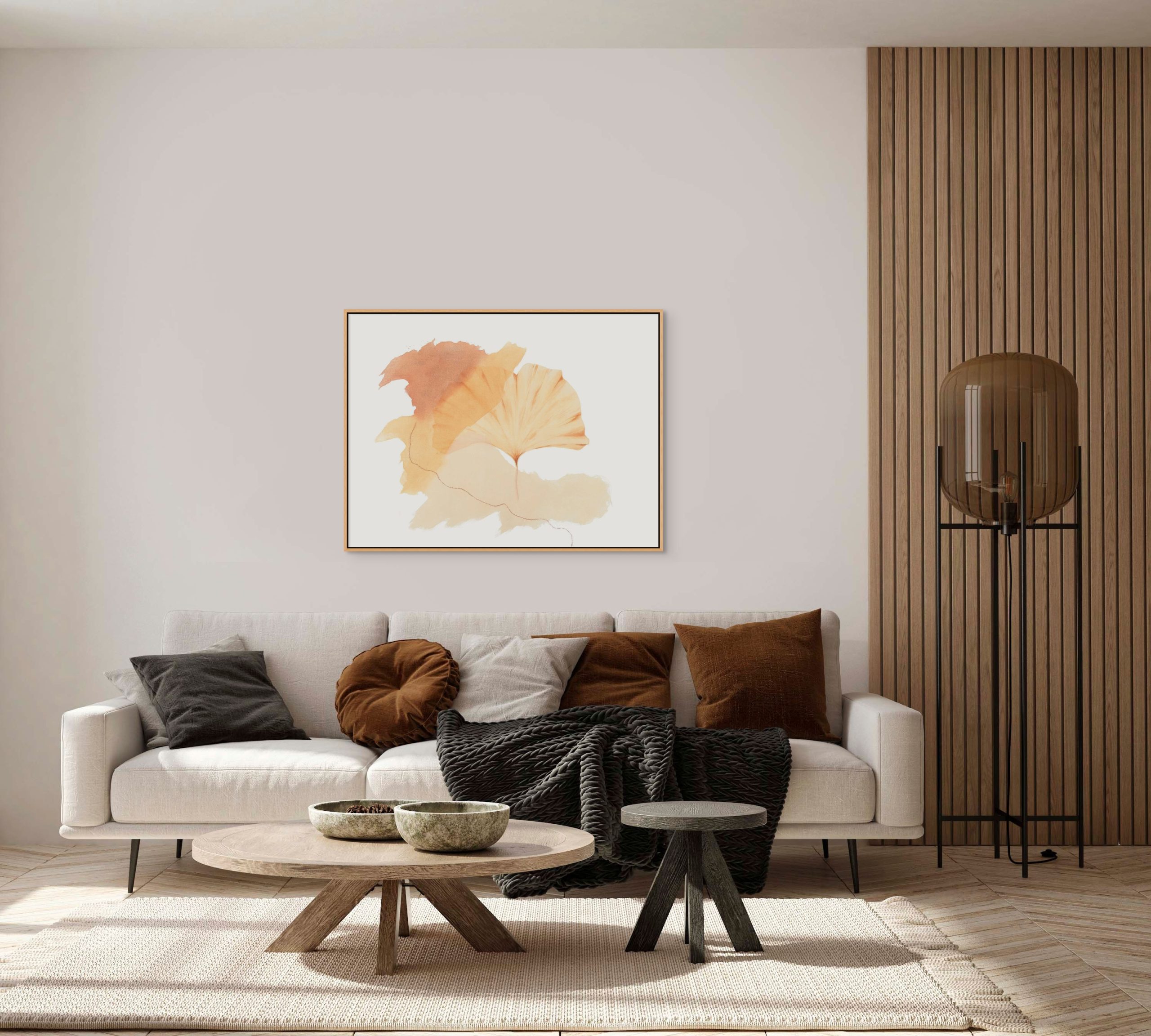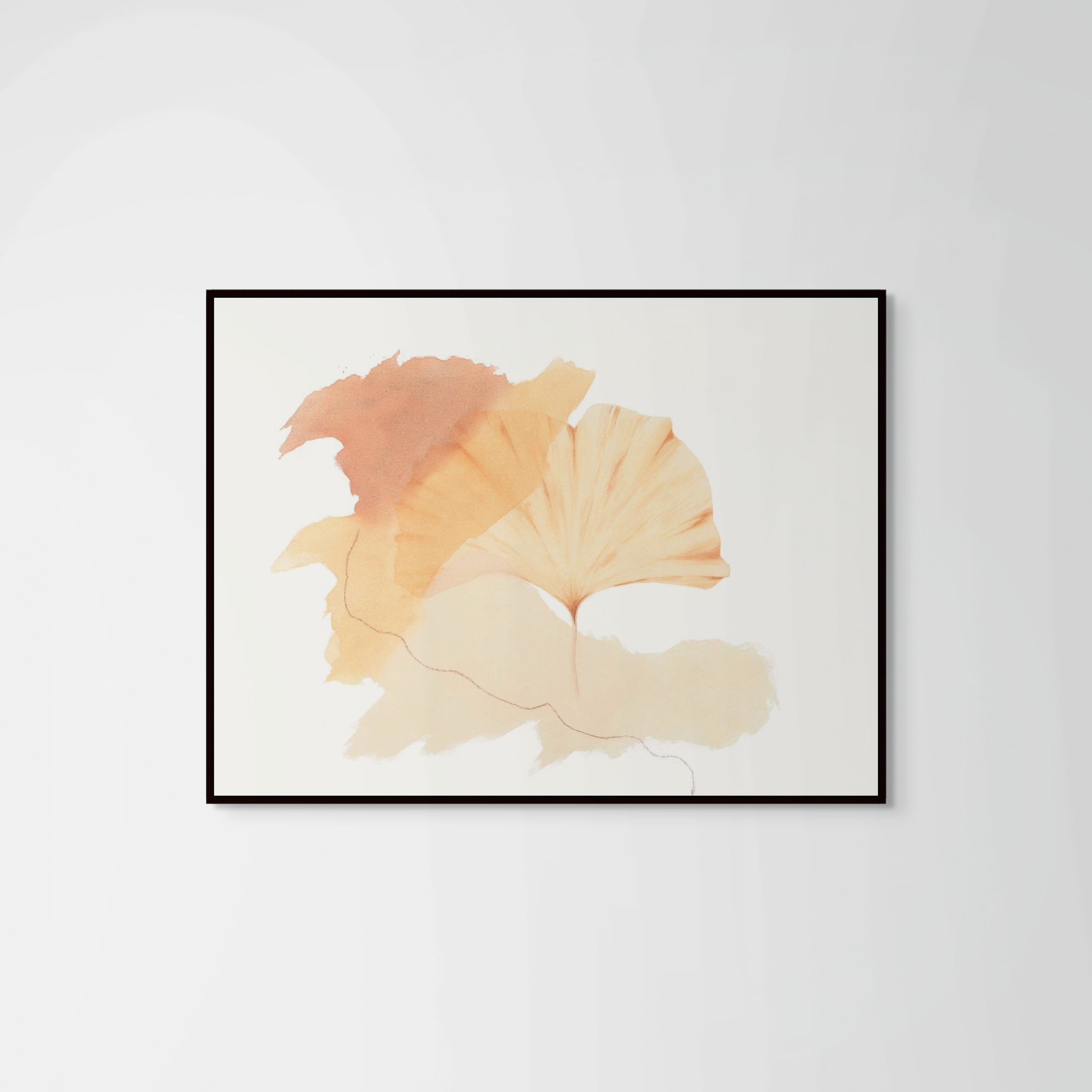 Geschilderd met zelfgemaakte aquarelverf van aardepigmenten, straalt dit werk een gevoel van rust en verfijning uit. De warme, aardse tinten zorgen voor een uitnodigende en ontspannen sfeer, perfect voor een modern interieur.